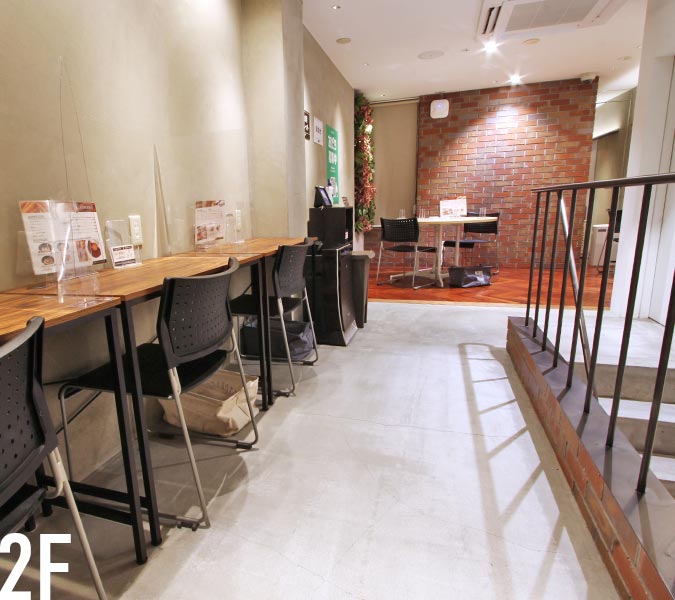 1Fでは、コーヒーやこだわりのサンドイッチ、ケーキなどを提供されており、上階のコワーキングスペースへ持って上がることも可能です。